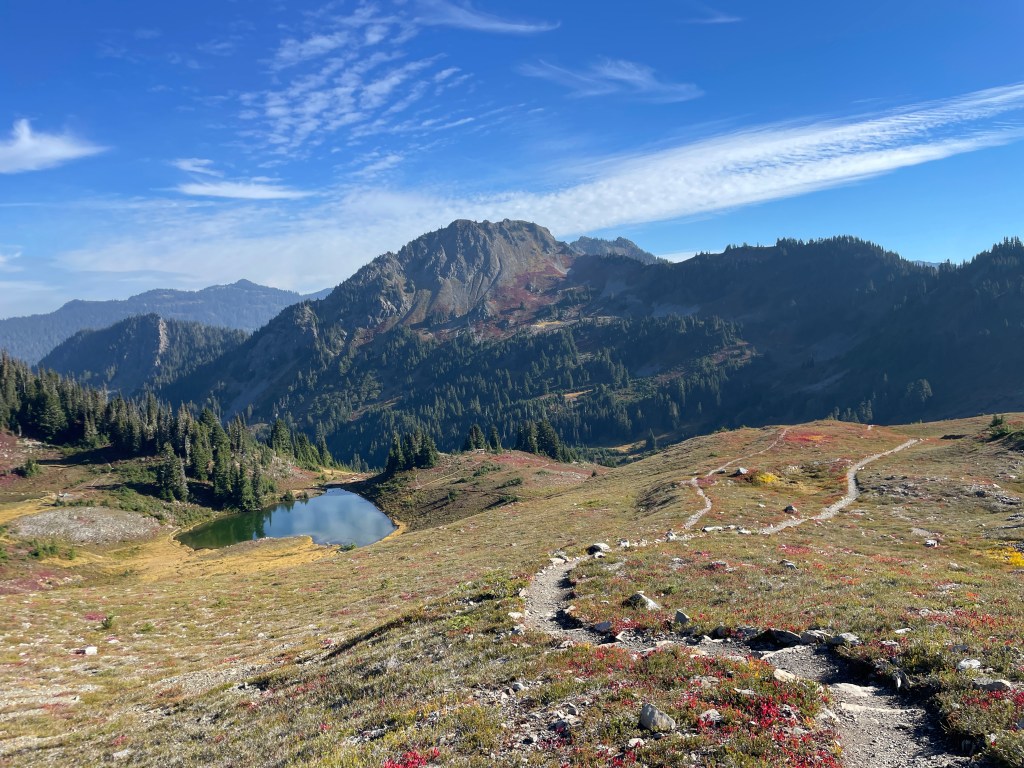 We passed several lakes on the Mirror Lake Trail (including the aforementioned Mirror Lake), said hello to Mount Olympus, and trekked through huckleberries galore — ate a few too, of course!