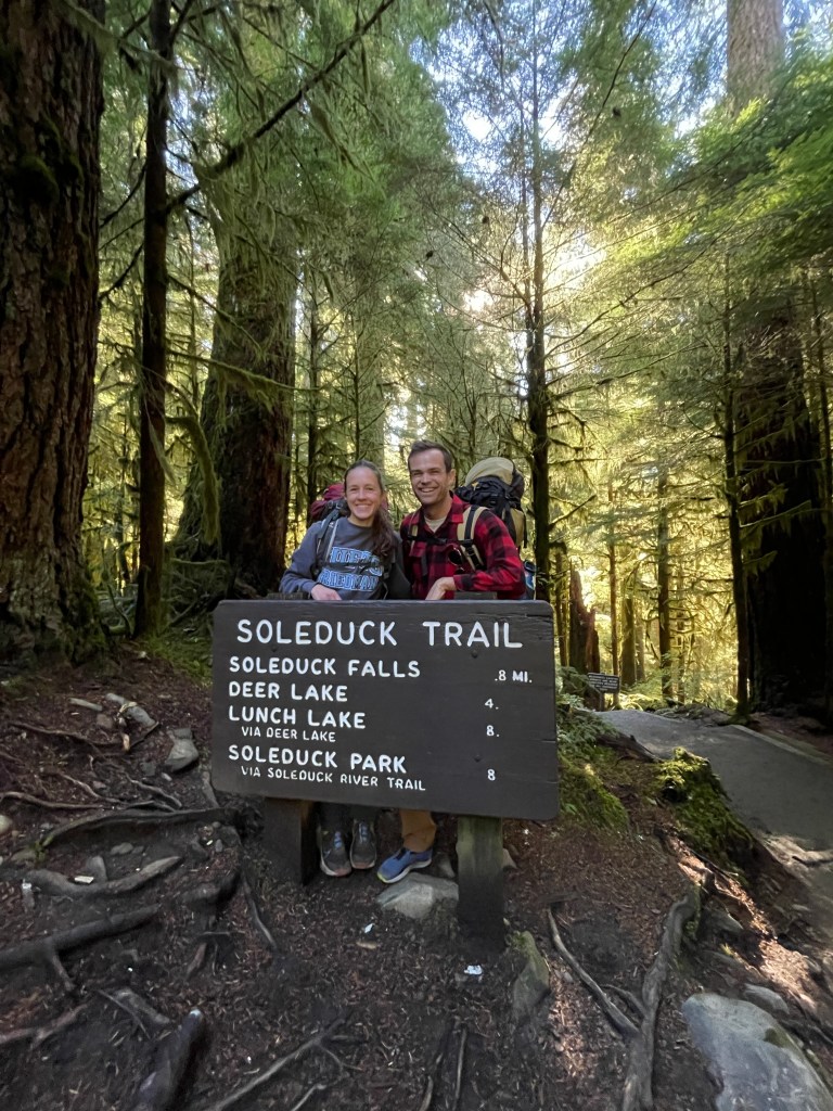 I had a rare occurrence of no scheduled work on October 6th and 7th and convinced my partner, Kevin, to go on a backpacking trip in the Olympics with me. It was my first backpacking trip EVER! And his first trip since middle school!