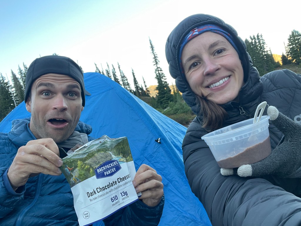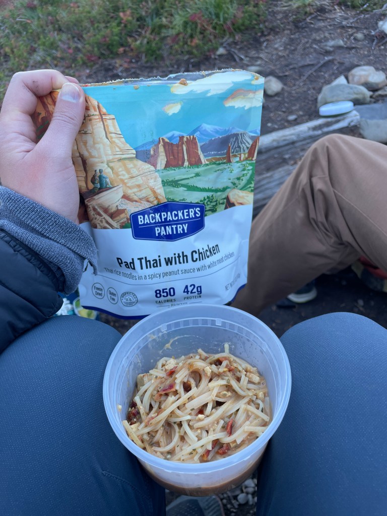 As the afternoon went on, a few other groups joined Kevin and me at Lunch Lake. Even so, it was incredibly peaceful and quiet. We passed time playing 21 Questions and Uno and enjoyed a gourmet Backpackers Pantry dinner of Chicken Pad Thai and chocolate cheesecake. Chef’s kiss!