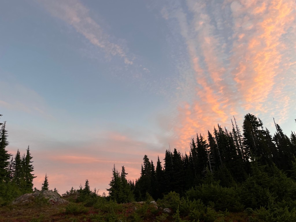 After a little while of enjoying the night sky, I went back to sleep, only to awaken to a sunrise bestowing our campsite with a beautiful pink and orange glow.